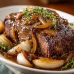 A delicious and hearty French onion pot roast made effortlessly in a crock pot, perfect for family dinners.