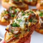 Spoon the creamy mushroom mixture generously onto each toasted baguette slice. Return the tray to the oven, and bake for an additional 10 minutes until the topping bubbles and the edges are beautifully browned. Serve immediately and watch them disappear!