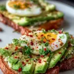 The air fills with the unmistakable aroma of toasting bread, crackling softly as it rises from the heat like a golden sunrise. Each slice will soon cradle the silky avocado mash, kissed with zesty lime and a sprinkle of vibrant red pepper flakes, a perfect harmony of flavors. Imagine bringing this dish to life, spooning the creamy mixture onto crisp bread, and watching it transform into an irresistible masterpiece. With every bite, you experience layers of texture: the crispiness of the bread, the sumptuous creaminess of the avocado, and the satisfying crunch of optional toppings. This isn’t just a meal; it’s a celebration on a plate.