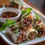 Sweet chili sauce is a classic choice, but you can also try peanut sauce or soy sauce for a savory touch. Each sauce brings out the flavors of the Irresistible Thai Basil Beef Rolls beautifully!