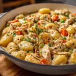 A comforting and hearty one pot meal featuring tender gnocchi, chicken, and a creamy sauce, perfect for a cozy dinner.